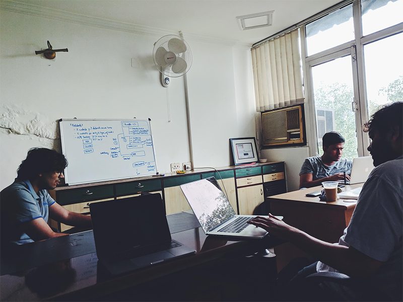 We're a small team of engineers, designers and product managers, mostly remote and with varying levels of involvement with the project. We sometimes operate out of our office in Sarai Jullena, New Delhi.